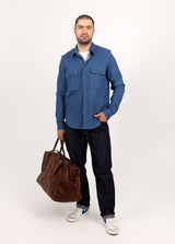 Atelier of Shades button-up denim work shirt with regular fit. Styled with chest pockets and buttoned cuffs.