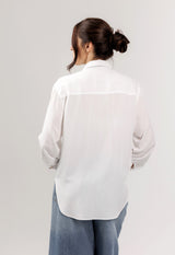 White Casual Shirt with Pointed Collar